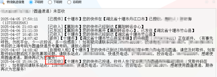 7.查看筛选后的结果,界面只显示符合签收条件的单号,双击单号可查看该单号的完整物流信息,支持对筛选结果进行二次筛选。