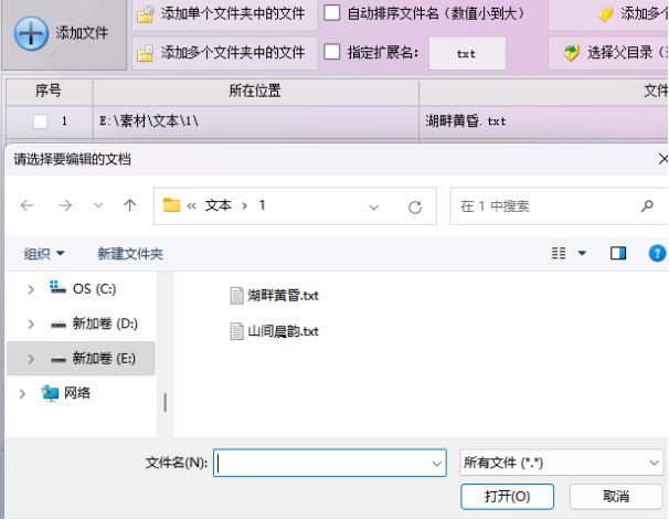 2.导入待翻译文本文件:在文本批量操作板块中,点击“添加文件”按钮,选择并导入包含内容的简体中文txt文本文档。