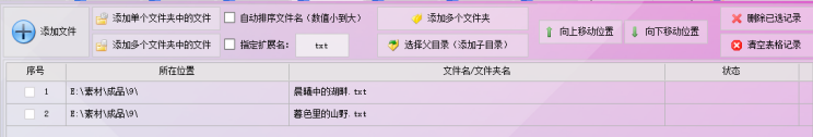 2.导入源文件:点击"添加文件"按钮,通过文件选择对话框批量选取需要处理的TXT文档,支持多选操作。