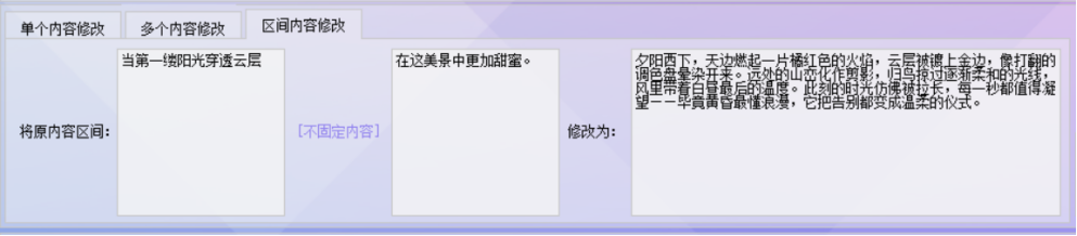 4.输入旧新内容:在“原内容区间”输入框中,输入需替换的文本起始部分和结束部分;在“新内容”输入框中粘贴或输入替换后的完整文本