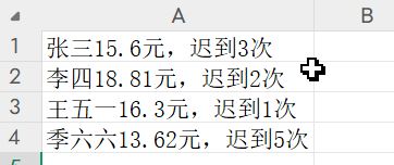 面对"姓名+金额+单位+迟到次数"的无规律混合文本(如"张三15.6元,迟到3次"),传统分列功能失效时,而用案例一的正则表达式只能提取其中的金额数值,无法提取迟到次数。
