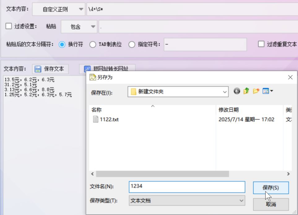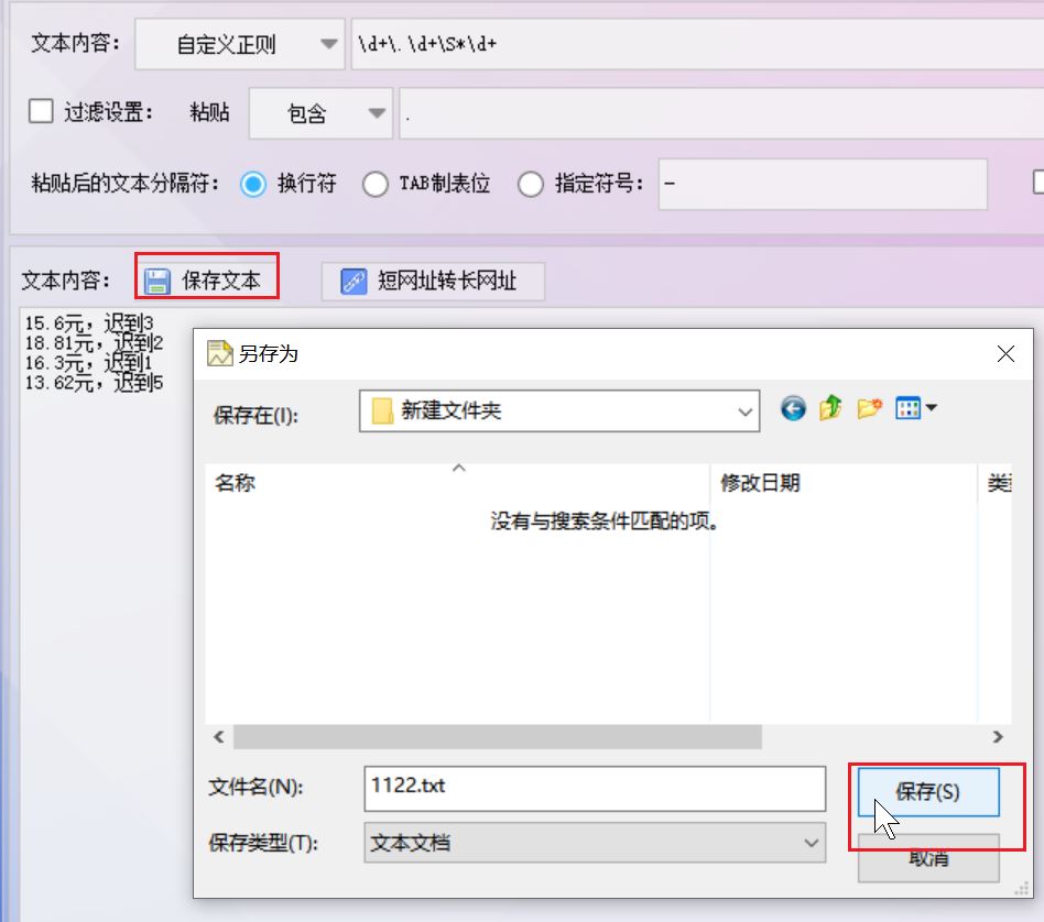 3、点“停止自动粘贴”按钮后,把提取好的文本保存为txt文件,如图: