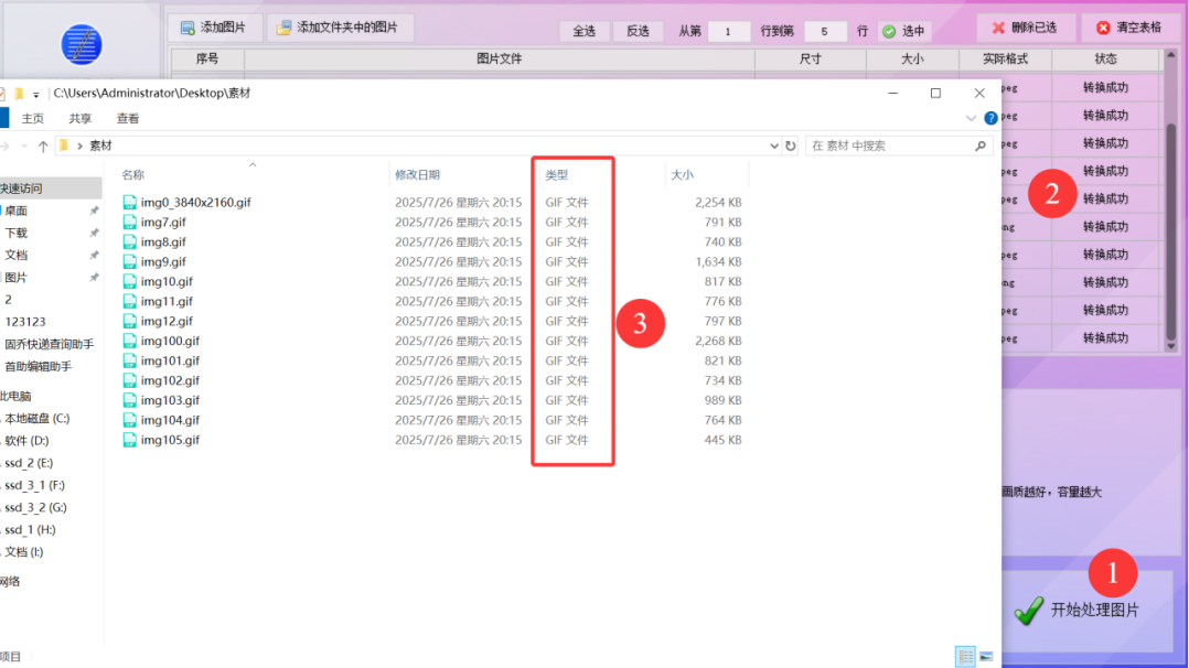 7、点“开始处理图片”后,打开图片,可以看到类型已全部转为gif格式了,如图: