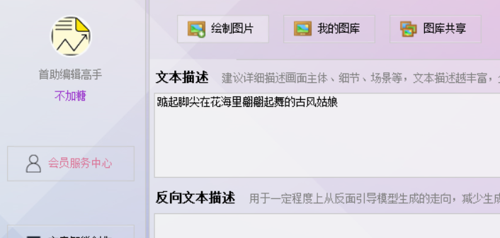 1.输入文本:在软件“AI魔法智能绘图”功能,根据需求输入描述性文字,文本描述越丰富,生成效果越精美。